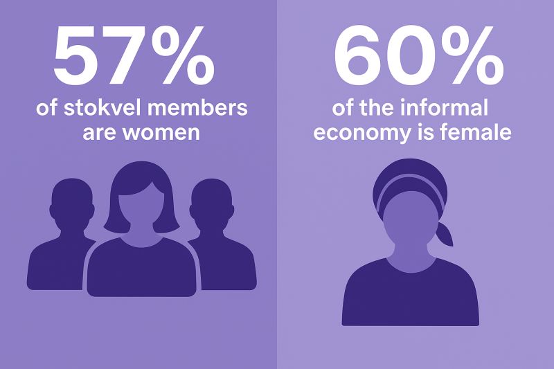 Stokvels are the heartbeat of community finance in South Africa, and the face of stokvels is female. About 57% of stokvel members are women, and over 60% of informal traders are women too.